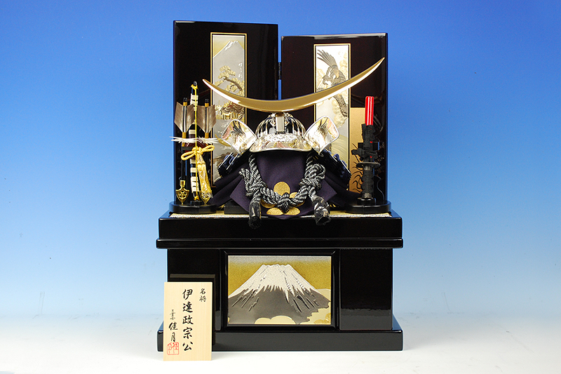 伊達政宗彫金兜収納飾り サイズ:間口36×奥行30×高さ50cm
