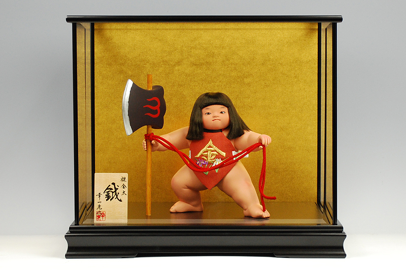 鉞を担いで熊の背に乗り、菱形の赤い腹掛けをつけた元気な少年像として、五月人形のお節句として飾られるようになりました。