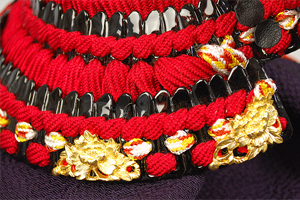 その昔実際に武具として使われていた甲冑は、しころ(兜のうしろ)の部分を漆で塗り固めることにより造られていました。漆で固めることにより丈夫になるためです。
