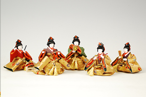 五人囃子は、大太鼓・大鼓・小鼓・笛・謡の順に座ります。 |