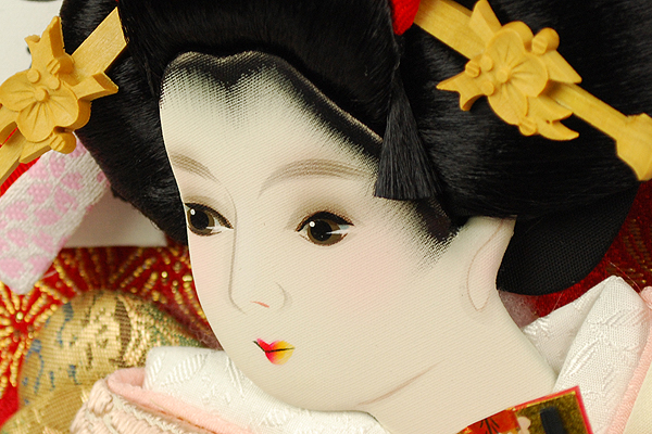 | 羽子板飾りのなかでも最高級に位置づけられる押し絵羽子板は、製作のほとんどが手作業です。正絹の衣装、手書きのお顔、細糸による髪の表現、そのしなやかで精緻な仕上がりは、最高級と呼ぶにふさわしい出来栄えです。 |
