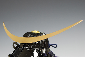 伊達政宗といえば、江戸幕府第三代将軍の徳川家光も非常に尊敬していたと言われている名将中の名将です。後に明治天皇が「文武に秀でた武将とは、実に政宗のことである。」と評しています。そこで加藤一冑氏の手により独眼竜正宗公の甲冑を復元致しました。仙台市博物館所蔵の『黒漆五枚胴具足 伊達政宗所用 』と全く同様の構造・工程で、サイズだけを四分の一に縮小しました。